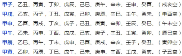 一旬,正好是十个天干轮完毕。当十二地支配合十天干后,剩余二个地支,这两个地支,我们就叫:旬空